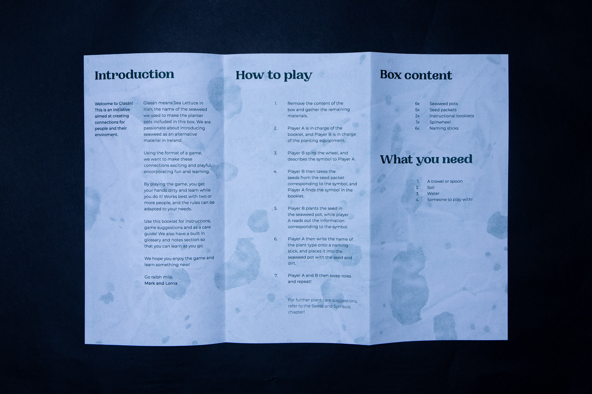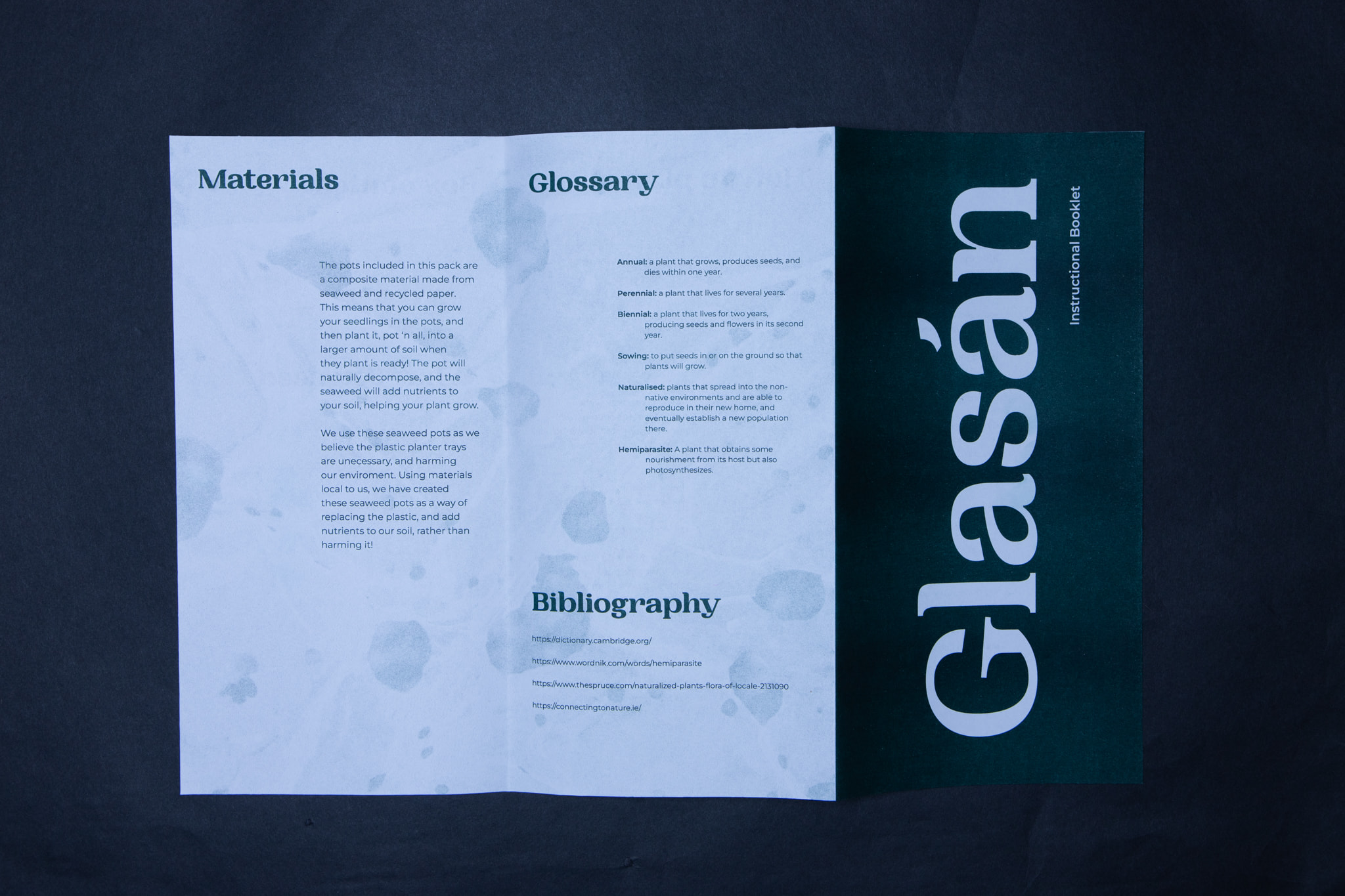 Glasán was a group submission for the RSA Student Design Awards. Working in collaboration with graphic designer, Lorna Quinn, our goal was to create a plastic free product that also gets people interacting with nature.